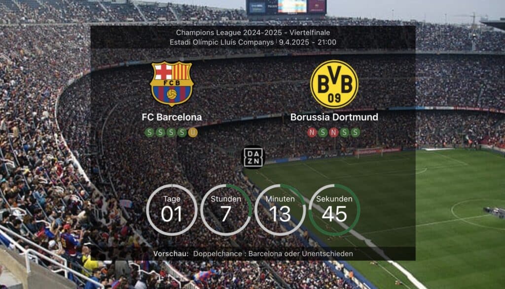 Borussia Dortmund steht vor einer der größten Herausforderungen dieser Saison: Im Viertelfinale der Champions League wartet kein Geringerer als der FC Barcelona. Trotz Verletzungssorgen und klarer Außenseiterrolle schöpft der BVB neues Selbstvertrauen – auch dank zweier überzeugender Bundesliga-Siege. Trainer Kovac trifft im Duell mit Barca-Coach Flick auf einen alten Weggefährten.